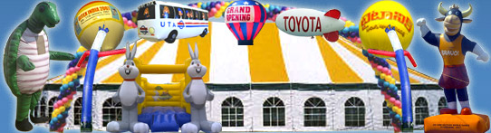 Advertising Balloons and Inflatables are the FASTEST growing method of advertising. Owning an advertising balloon is like having your very own billboard but at a fraction of the cost! When your balloon is mounted on the roof or flying in the sky you are letting everybody know that you are open and ready for business. Our large balloons are designed to attract the people that are passing by your location and are most likely to become your next customer. Our balloons are used for grand openings, retail sales, trade shows, dealer sales, swap meets, fairs and festivals and other events that need visibility.